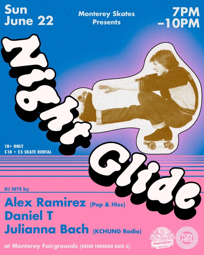 Close out the weekend your way—with smooth moves, clean grooves, and grown-up skate vibes at our Sunday Evening Night Glide. This 18+ session is for adults who want to roll, vibe, and unwind to a hand-picked soundtrack of funk, disco, house, and throwback favorites. The lights are low, the energy is high, and the floor is yours—whether you’re skating solo, linking up with friends, or showing off your signature style. This event is co-hosted with Pop & Hiss, and they’ll be sending three DJs to keep you in the groove: Alex Ramirez and Daniel T (Pop & Hiss) and Julianna Bach (KCHUNG Radio)